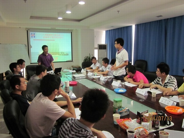 2011年7月15日,廣西新港灣工程有限公司迎來了13位來自全國各地重點院校的應屆大學畢業(yè)生,是2010年公司人力資源部通過到各大院?,F(xiàn)場招聘的一批大學生,他們是技術(shù)專業(yè)對口,綜合素質(zhì)較高的難得人才。13位應屆大學畢業(yè)生的到來,為公司的發(fā)展注入了一股青春的活力。公司計劃通過未來3-5年時間的培養(yǎng),將他們發(fā)展成為公司的技術(shù)骨干或中層管理人才。