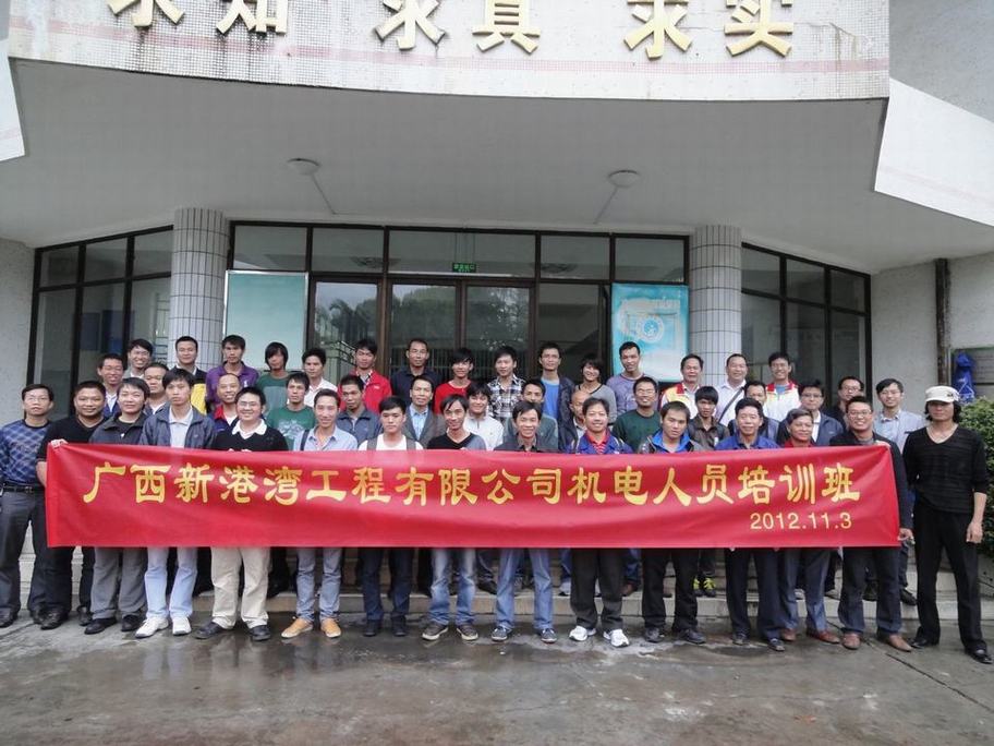 2012年11月3日,在廣西交通運(yùn)輸學(xué)校的實(shí)訓(xùn)基地內(nèi),廣西新港灣工程有限公司與廣西交通運(yùn)輸學(xué)校合作創(chuàng)辦的機(jī)電技術(shù)短期培訓(xùn)班。